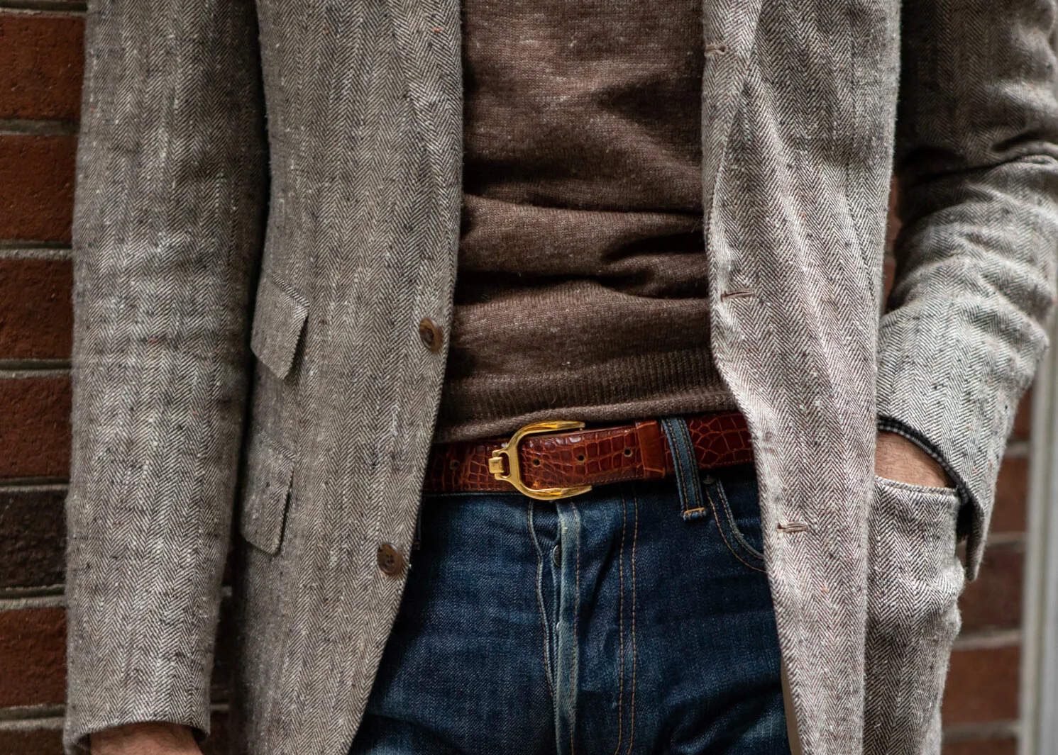 It’s common knowledge that it’s a good idea to match your belt to your shoes. Taken literally, this maxim produces a belt wardrobe of black and brown calfskin — maybe some brown suede — and no harm done. For those comfortable with a bit more eccentricity, however, it’s an opportunity to show more of one’s personality.